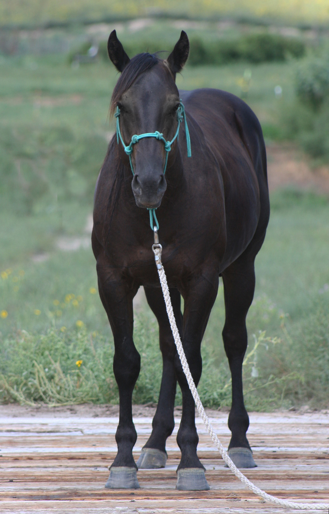 Blackberry is smooth & nice to ride! He will watch a cow. Not a lazy horse, he will move out willingly, & doesn't quit you. Easy to catch, good solid all black feet.