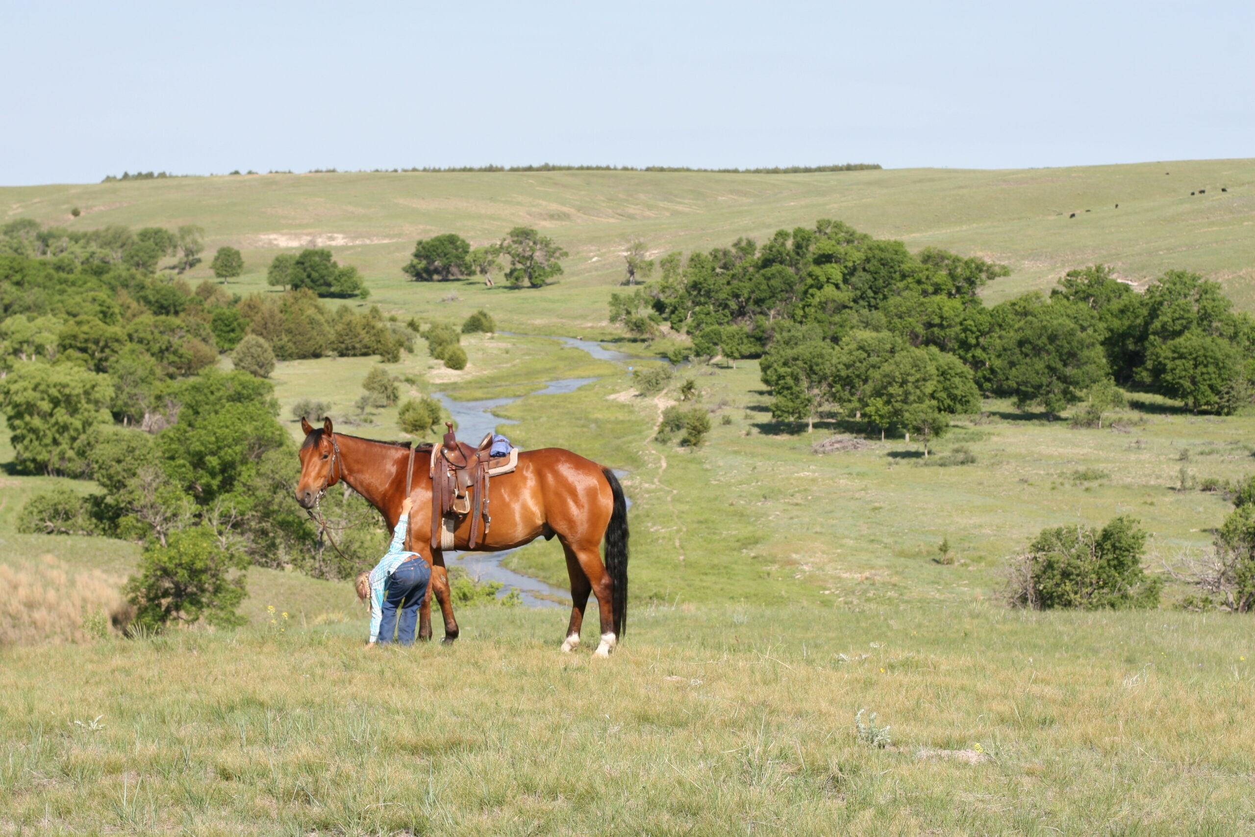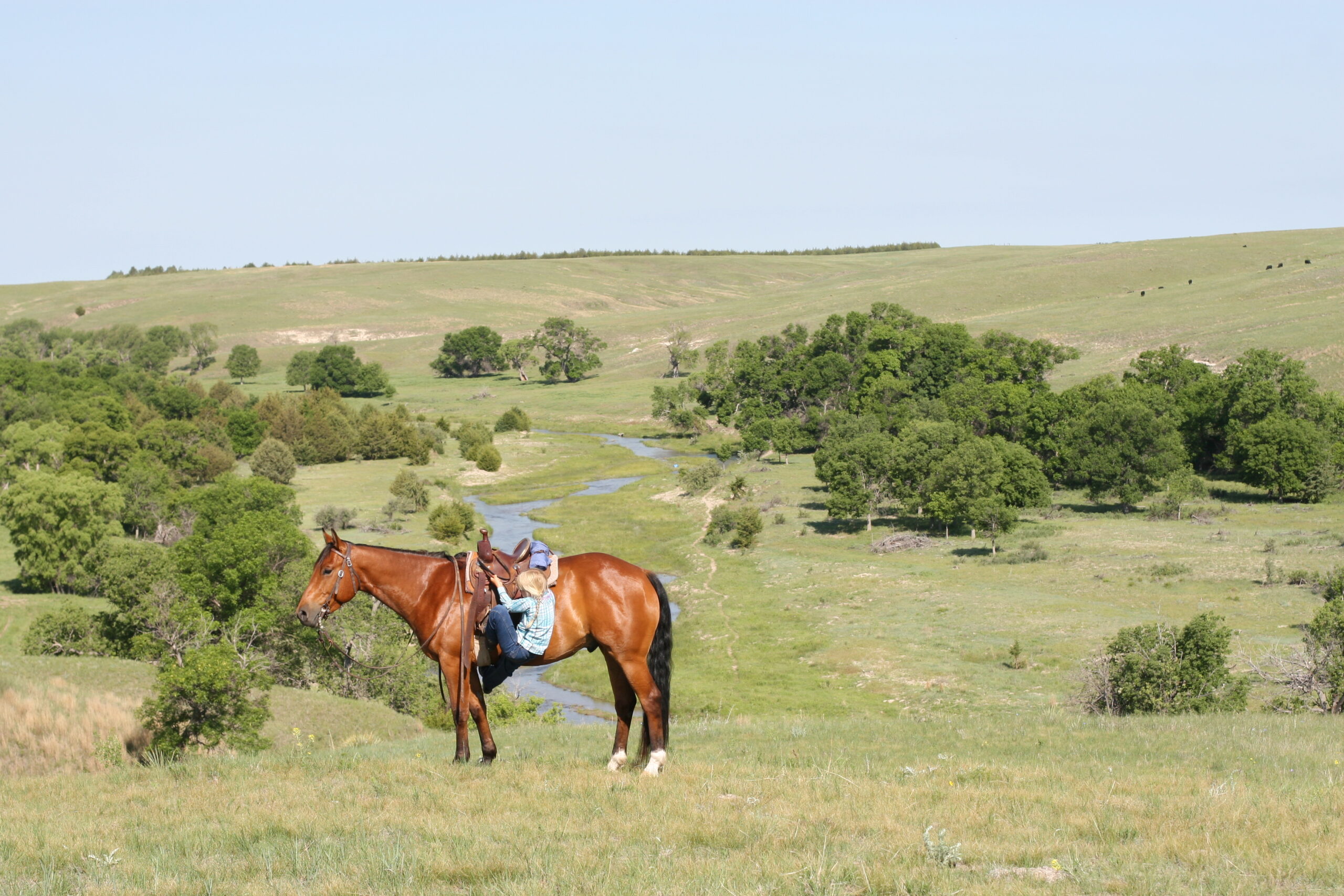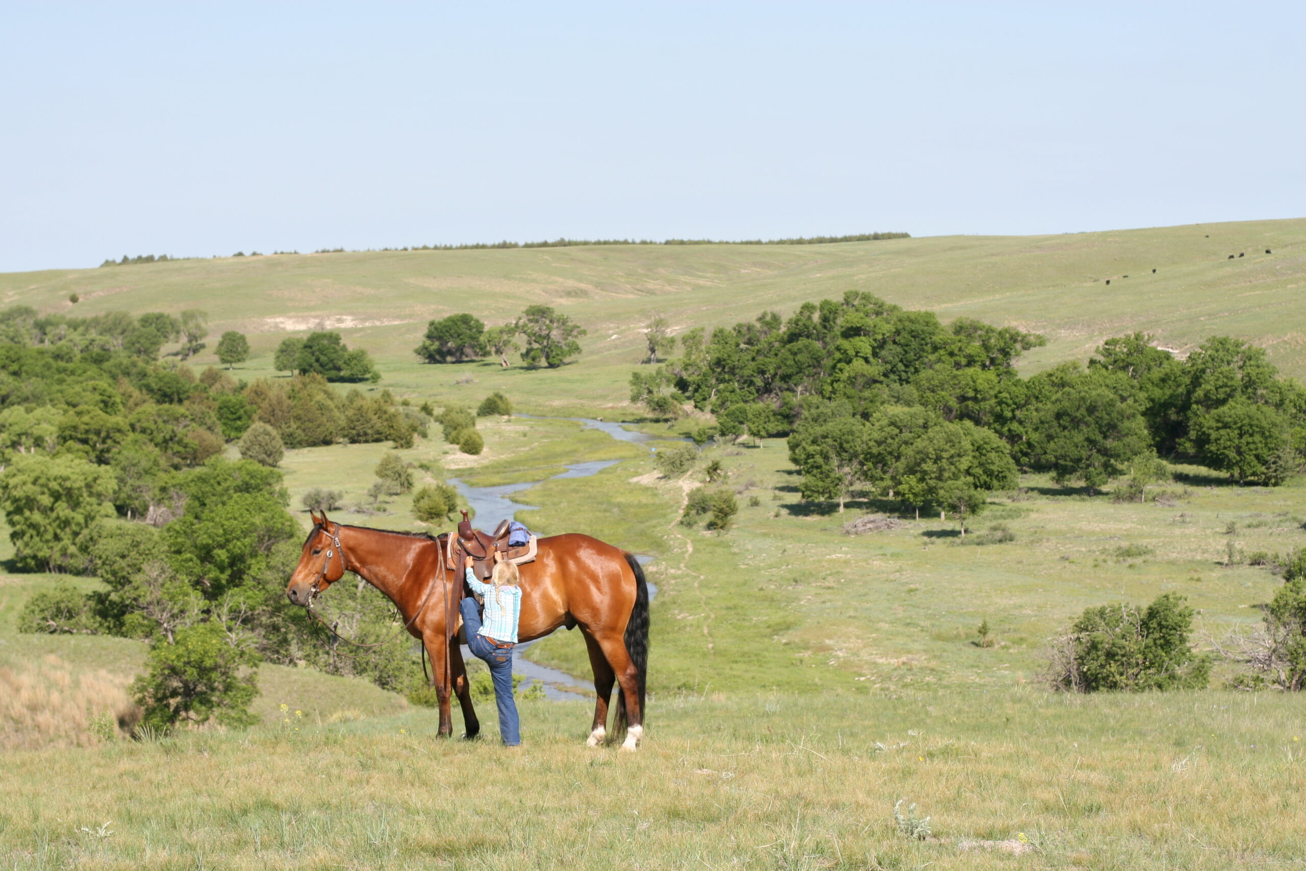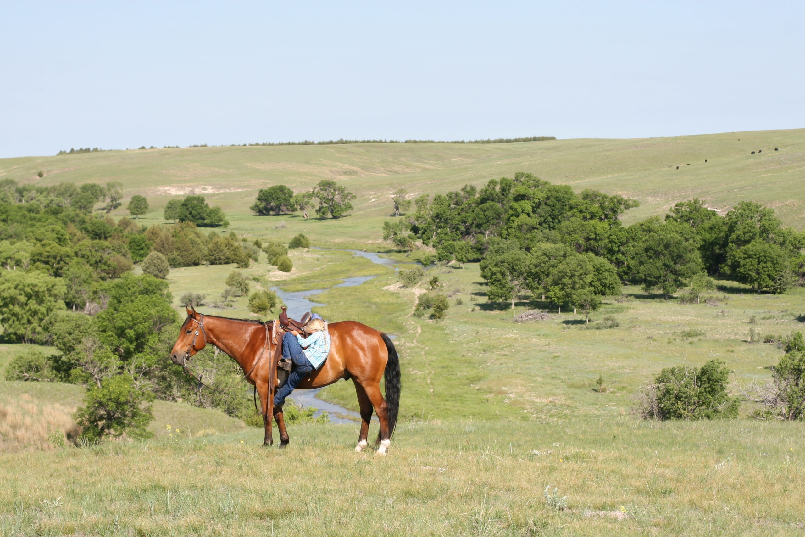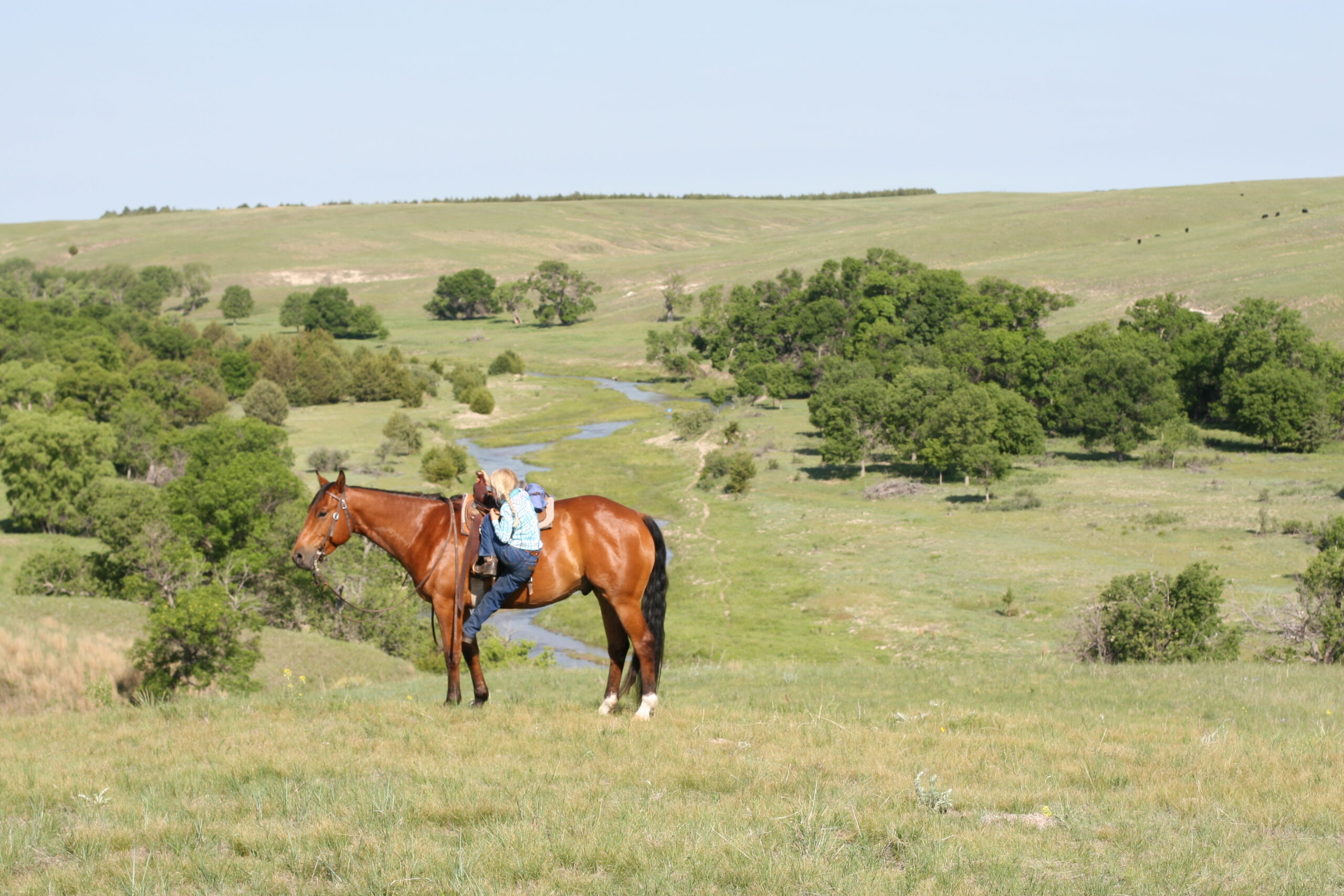 We bought Magic as a 2 1/2 year old, he showed a lot of promise at that age & he has developed just as we had hoped . Anne rode him the fall we purchased him, & Curt rode him the spring of his 3 yr. old year. We also used him during AI work up until 1rst July, Curt rode him again through fall round-up. He is cowy, soft in the face. & always gentle after time off. He is a top ranch & all around family horse, & has the athletic ability to go to the arena. He is super gentle, has a lot of ambition and try.